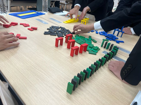 カラフルなドミノを使ったグループワークにて、ゲーム感覚ながら、チームビルディングや主体性、コミュニケーションの重要性など、社会人に必要な要素が自然と詰め込まれた内容で、皆さん「半分真剣・半分楽しみながら」取り組んでいました。
